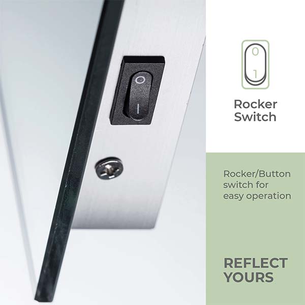 Operating the LIBRA mirror is effortless with its straightforward on/off switch. This user-friendly feature allows you to control the illumination with ease, ensuring the perfect lighting for any time of day. Whether you’re preparing for the day ahead or winding down in the evening, the LIBRA mirror provides reliable and adaptable lighting to suit your needs.