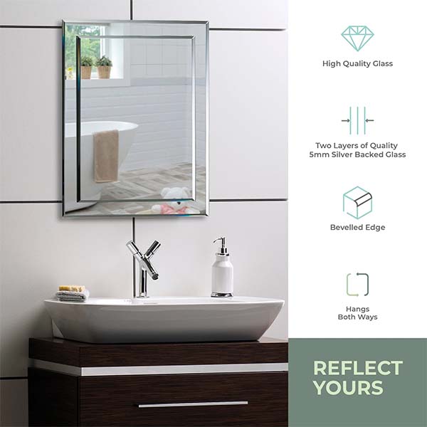 In summary, the LYNNE Rectangular Bathroom Mirror from Redwing is the epitome of luxury and functionality. With its high-quality, double-layered silver-backed glass and elegant 10mm bevel, it offers a touch of refinement that enhances any bathroom space. Elevate your home with the LYNNE mirror and enjoy a perfect combination of style, clarity, and durability.