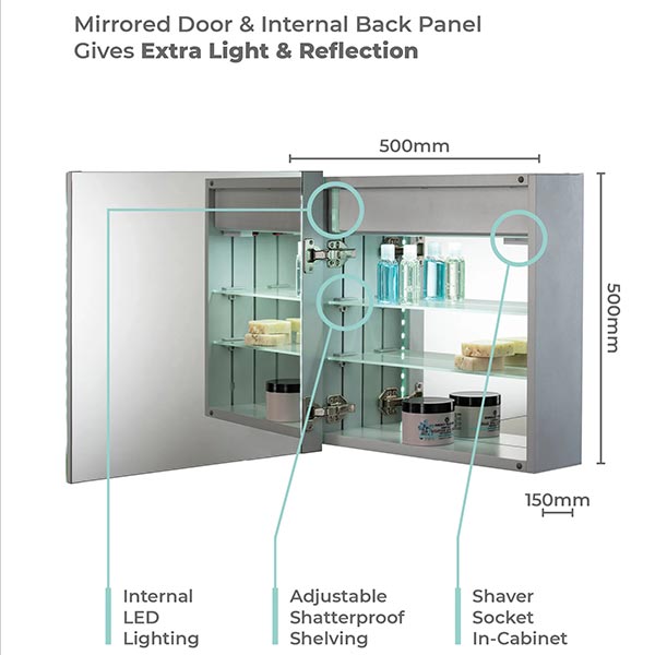 Introducing the Pallas LED Illuminated Bathroom Mirror Cabinet—an embodiment of timeless elegance and functional design that seamlessly integrates into the aesthetics of your Irish home. Crafted with sophistication, this mirror cabinet adds a touch of modern luxury to your bathroom space, creating an ambiance of tranquility and style. It is also ideal as a Mirror Cabinet for Washroom.